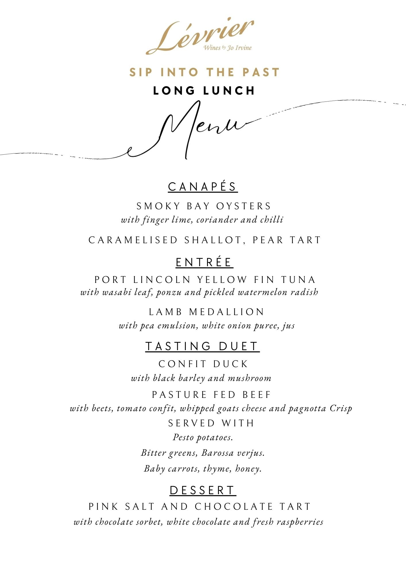 Sunday 5th October 2025 (Sunday of long weekend in October), from 12 noon at Levrier Wines Barrell Hall, next to Levrier Cellar Door, 928 Research Road Nuriootpa South Australia 5355 - $185.00 pp